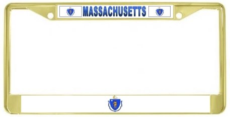 "Massachusetts Ma State Flag Gold Tone Metal License Plate Frame Holder" Feature