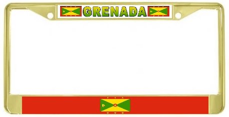 "Grenada Grenadines Flag Gold Tone Metal License Plate Frame Holder" Overview