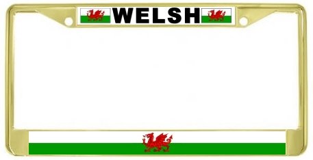 "Wales Welsh Dragon Flag Gold Tone Metal License Plate Frame Holder 2" Overview